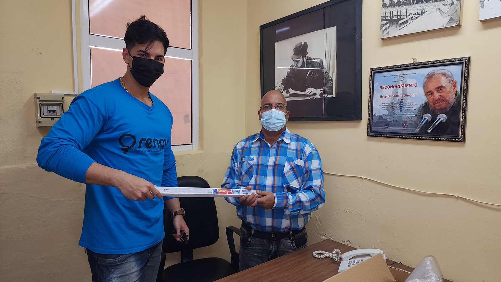 In compliance with the Agreement of the RENOVA Board of Directors, we began with the first donation to the U.P. Provincial Teaching Surgical Clinical Hospital Amalia Simoni, delivering today 25 OSRAM LED STAR T8 Diffused 8W lamps, 25 OSRAM LED STAR T8 Diffused 16W lamps, and 1 Roll of 100 meters of 12 LS Black electrical cable. These products will be used to improve the lighting of the institution and the electrical wiring of its rooms, with the aim of promoting the development of the provision of medical care services.