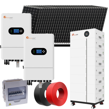 Kit fotovoltaico diseñado para respaldar instalaciones de hasta 3000 W de demanda con inversor a 110 V de tensión, concebido para cargar las baterías usando la energía solar fotovoltaica y/o la red eléctrica.